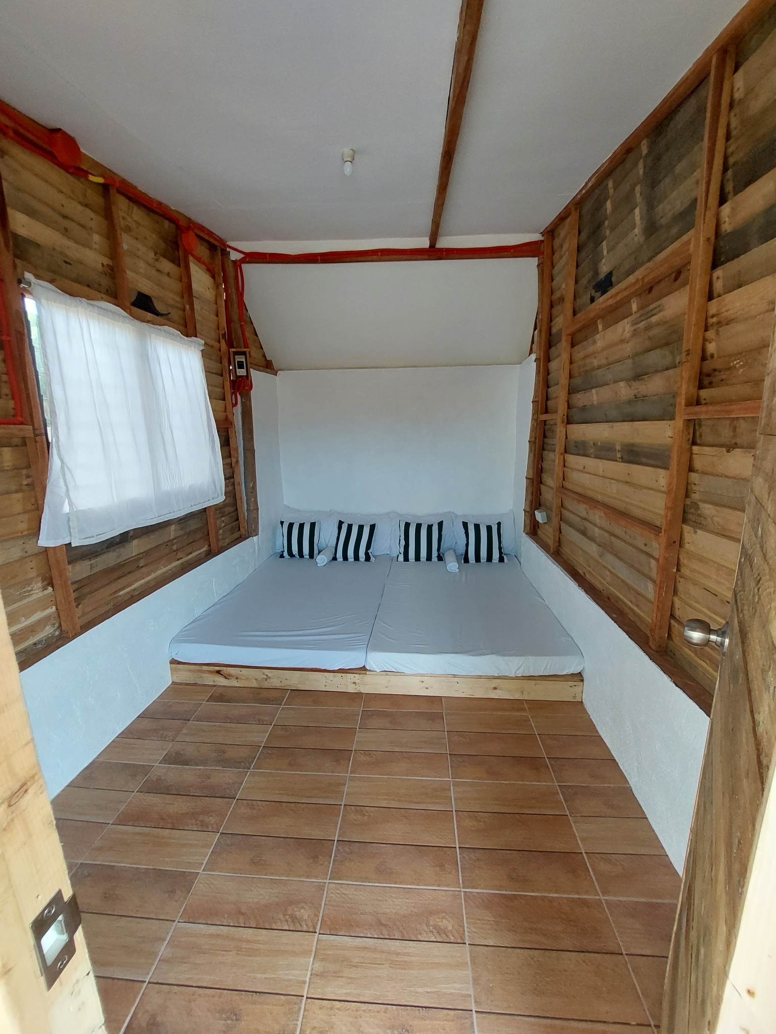 Designed as modern Kubo-style huts with air conditioning, a private bathroom, and a balcony.